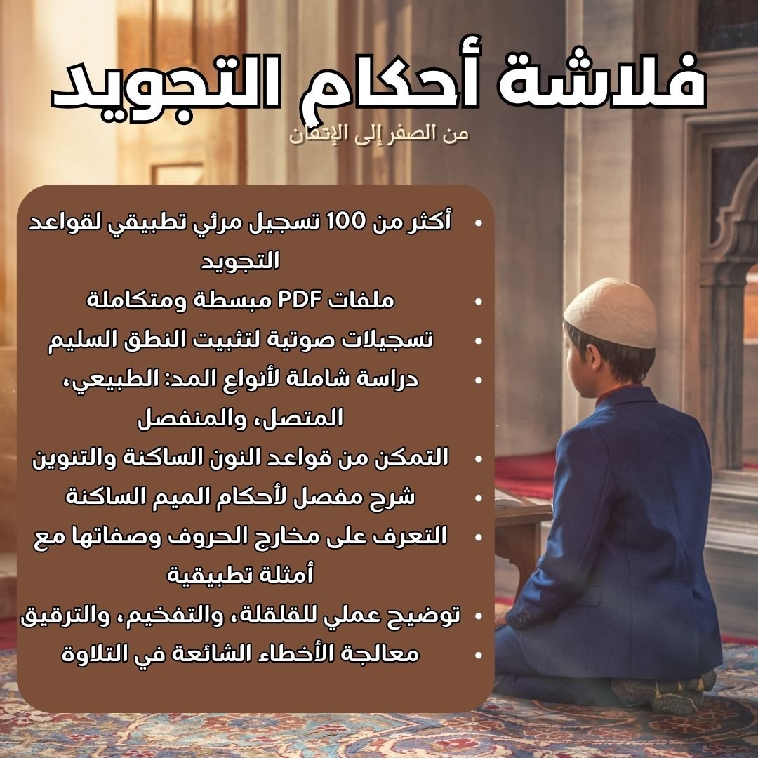 اجعل رحلتك مع كتاب الله أكثر سهولة وعمقًا مع فلاشة أحكام التجويد التي تجمع بين التعليم النظري والتطبيق العملي بطريقة منظمة وشاملة.